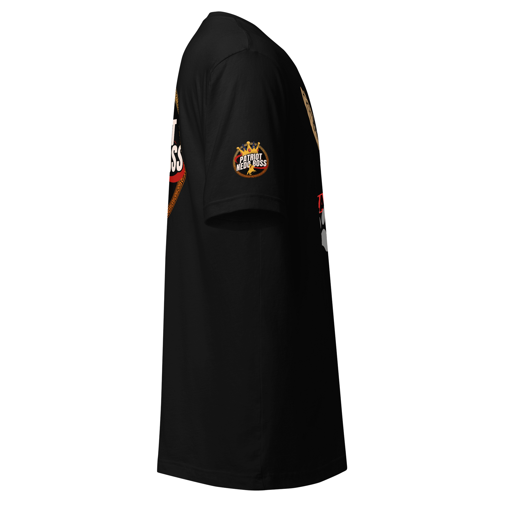- Eco-friendly Unisex Staple T-Shirt made from 100% recycled materials with a striking design for sustainability and justice.